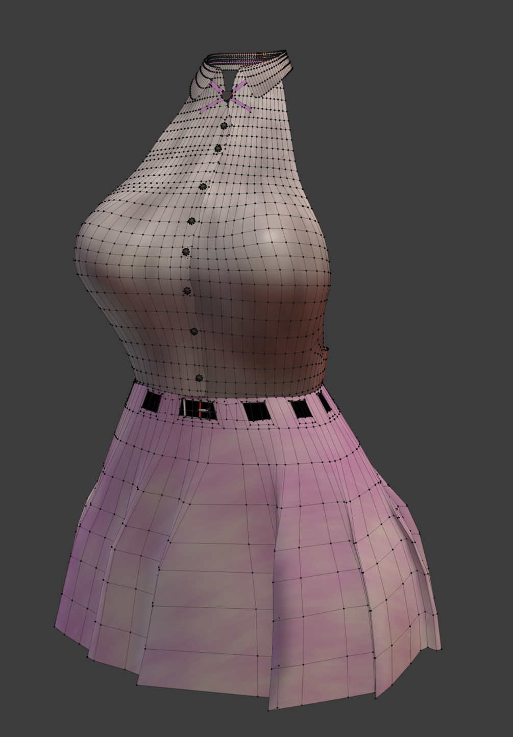 Comes with textures for skirt and top but buckle just throw a metal matcap on or something